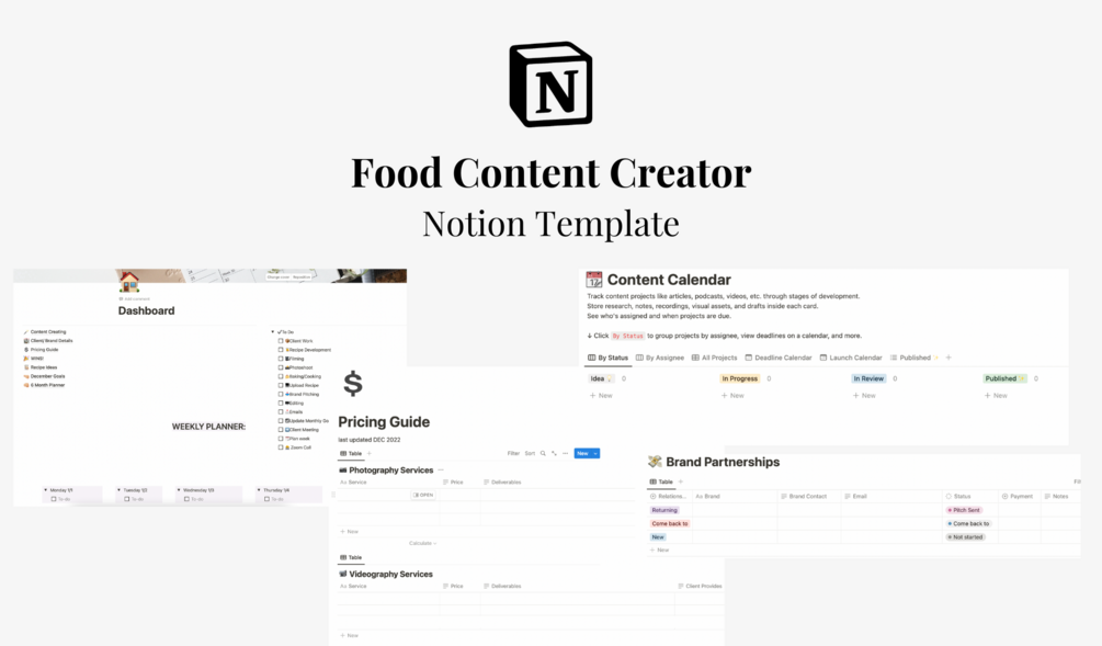 Use this template to keep track of all your content creator ideas, goals, partnerships and deadlines! This is the dashboard I use to keep track of everything and absolutely love having all the information I need organized in one space!